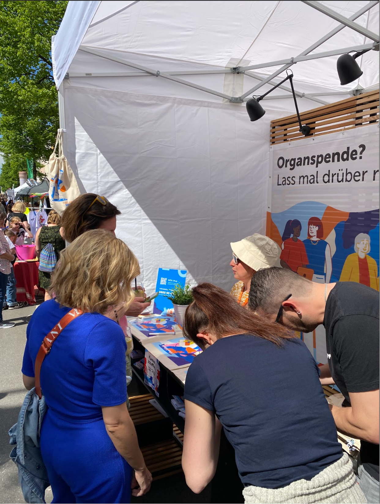 Unser Team führte Interviews, war mobil in der Innenstadt unterwegs und bot Mitmachaktionen und Quizzes für die Teilnehmenden an. Über 6.600 Menschen wurden erreicht und 6.700 Organspendeausweise verteilt.